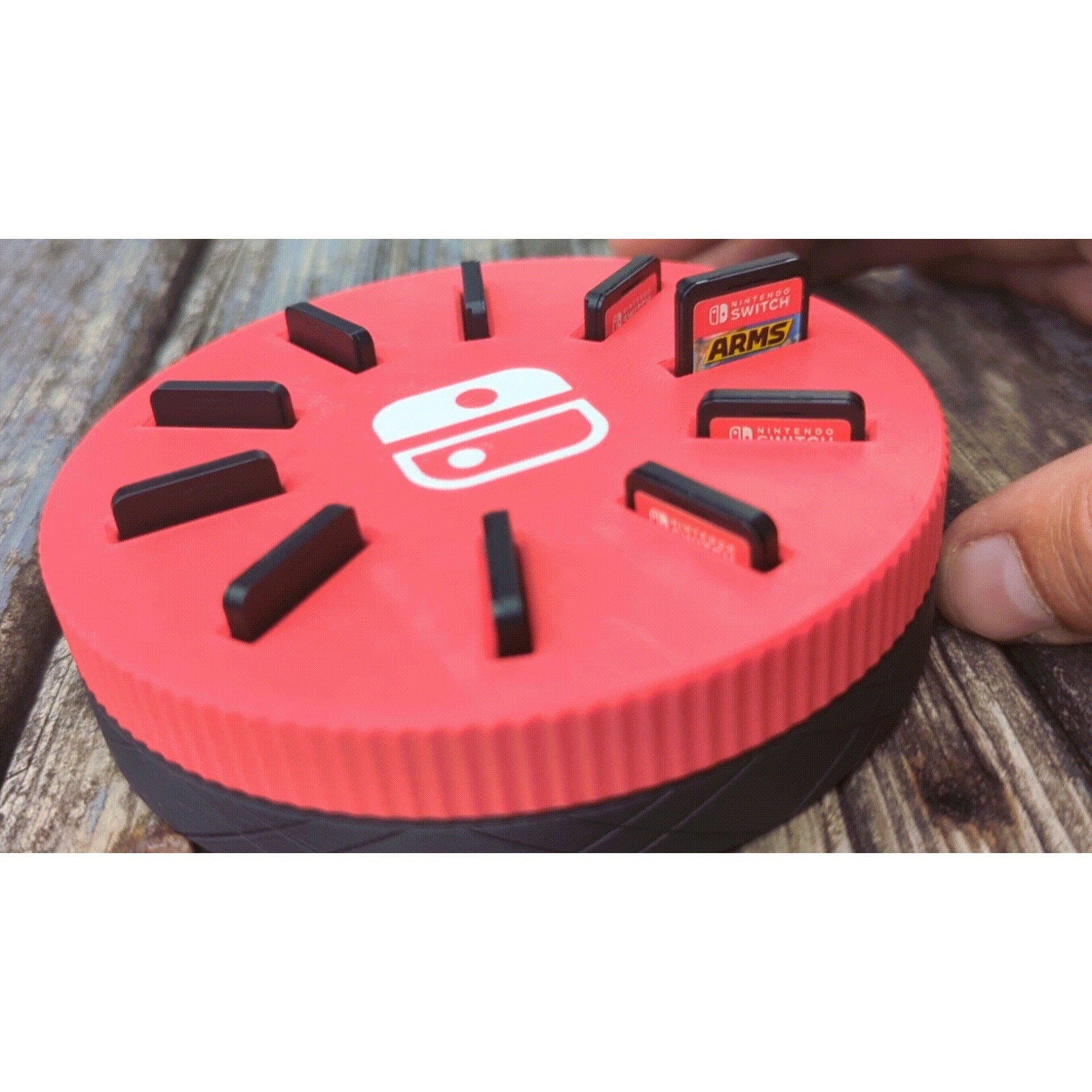 Carousel that can hold 10 Nintendo Switch games.